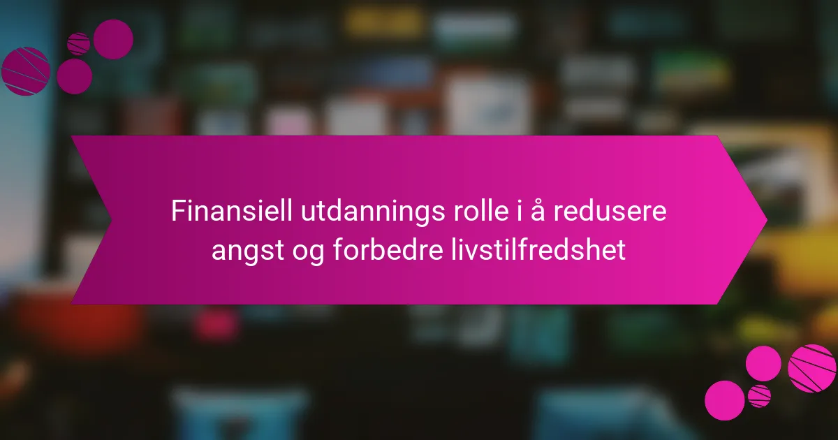 Finansielle utdanningsprogrammer reduserer betydelig stress ved å forbedre finansiell kompetanse. Bedre forståelse av personlig økonomi fører til bedre budsjettering, sparing og investeringsbeslutninger, noe som senker angst knyttet til pengeforvaltning. Studier viser at deltakere opplever økt selvtillit i håndtering av økonomiske spørsmål, noe som resulterer i bedre velvære. I tillegg inkluderer disse programmene ofte mestringsstrategier for finansiell stress, og gir verktøy for effektivt å håndtere økonomiske usikkerheter.