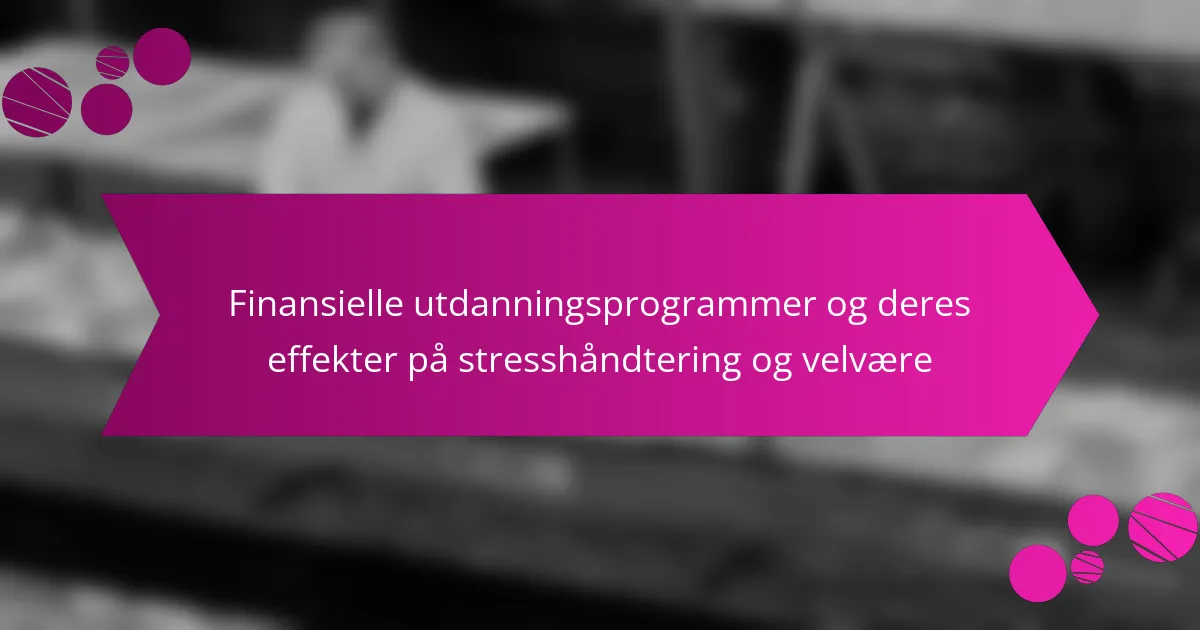 Finansiell utdanning spiller en avgjørende rolle i å redusere angst og øke livstilfredshet. Den gir enkeltpersoner mulighet til å ta informerte økonomiske beslutninger, noe som fører til lavere stressnivåer. Effektive programmer fokuserer på personlig læring og samfunnsengasjement, noe som fremmer en dypere forståelse av økonomiske konsepter. Praktiske steg, som å sette klare økonomiske mål og bruke nettressurser, forbedrer ytterligere økonomisk kompetanse og generell velvære.